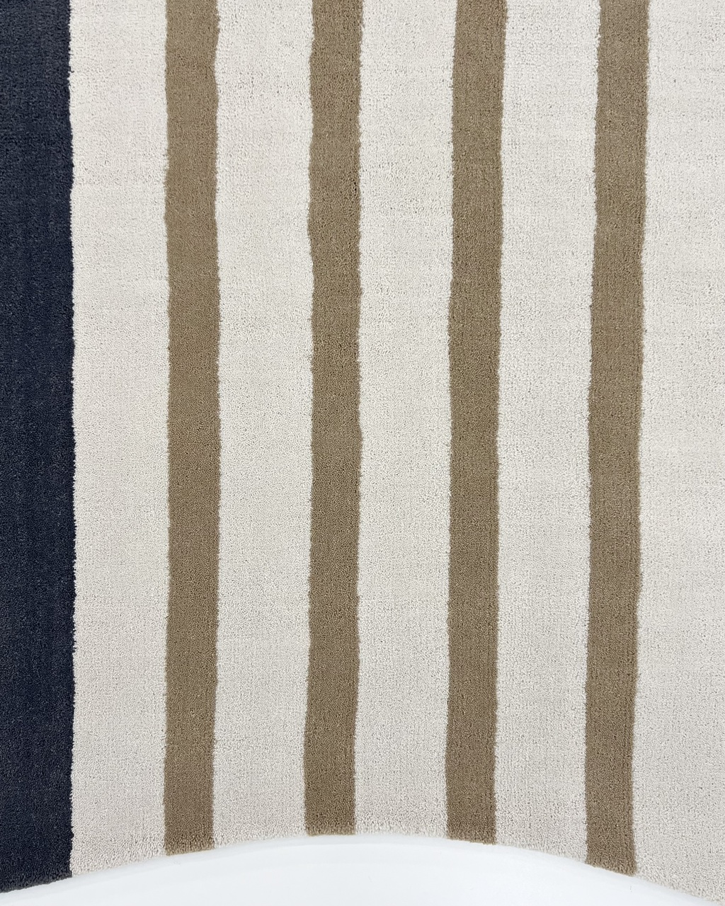 Produzido em Nylon Econyl, esse tapete apresenta textura aconchegante, resistência e um acabamento refinado. Além disso, seu design é formado por costuras na superfície, conferindo um toque artesanal e exclusivo.